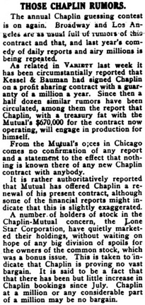 Editorial content. „CHAPLIN FILM POSTPONED.