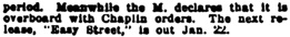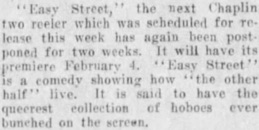 of Chaplin‘s next release, Easy Street, the postponed date being