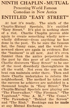 Easy Street. The Chaplin-Mutual Specials now playing are