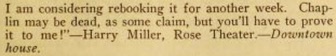 it to me!“ – Harry Miller, Rose Theater. – Downtown house.