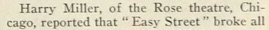Harry Miller, of the Rose theatre, Chicago, reported that