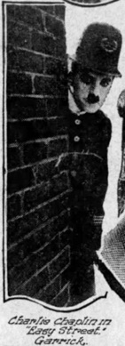 & Charlie Chaplin in „Easy Street,“ Garrick.