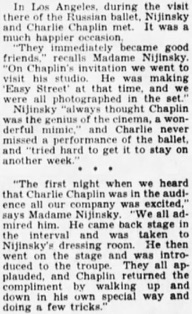 Madame Nijinsky. „On Chaplin‘s invitation we went
