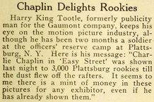 Chaplin in Easy Street was shown last night to 3,000 Plattsburg