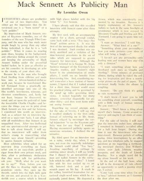 Leonidas Owen, Picture-Play Weekly, New York, October 2, 1915.