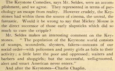 Editorial content. „The Keystone Comedies, says Mr. Seldes,