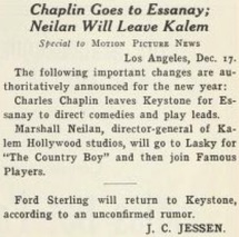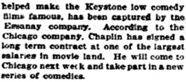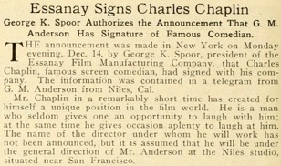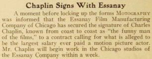 & CHARLES CHAPLIN JOINS ESSANAY