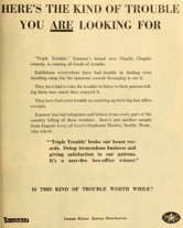 Triple Trouble, Essanay‘s brand new Charlie Chaplin