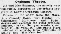 Mr. and Mrs. Emmett, the novelty ventriloquists, appeared