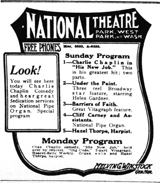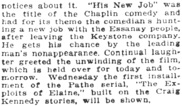Chas. Chaplin comedy, ,His New Job,‘ held over