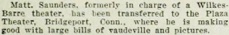 & Matt. Saunders, formerly in charge of a Wilkes-Barre theater,