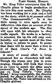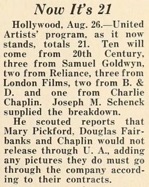 Chaplin. Joseph M. Schenck supplied the breakdown.