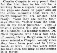 (...) Charlie Chaplin Will Start Work June 15 on His