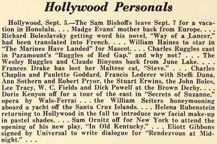 June 15 Charlie expects will see him, Paulette Goddard,