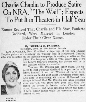 Rumor Revived That Charlie and His Star, Paulette Goddard,