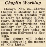& Chaplin Working. Chicago, Nov. 26. – Charles Chaplin