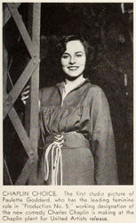& CHAPLIN CHOICE. The first studio picture of Paulette