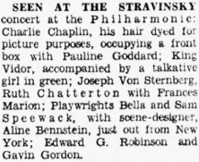 at the Philharmonic: Charlie Chaplin, his hair dyed
