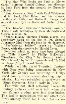 Join Fox; Schenck Becomes Chairman, Zanuck