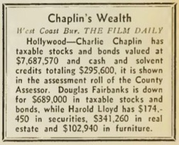 Hollywood – Charlie Chaplin has taxable stocks and bonds