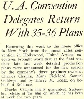 three producer-owners: Charles Chaplin, Mary Pickford, Samuel Goldwyn and by Harry I. Goetz, on behalf of Reliance.