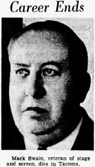 TACOMA, Aug. 26. (AP) – Mack Swain, 59 years of age,