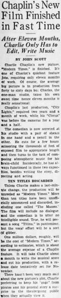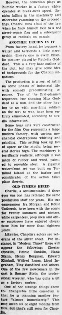 Charlie Chaplin‘s new picture, Modern Times, is finished.