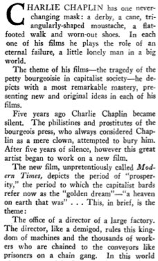 CHAPLIN MODERN TIMES, New York, Feb. 5, 1936