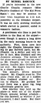 „What about that kiss you gave Mr. Chaplin at the airport?“