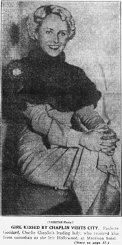 & GIRL KISSED BY CHAPLIN VISITS CITY. Paulette