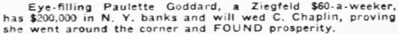 has $200,000 in N. Y. banks and will wed C. Chaplin, proving