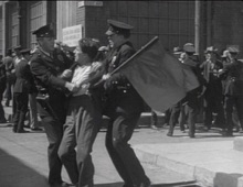 only one carrying a red flag, he is arrested.