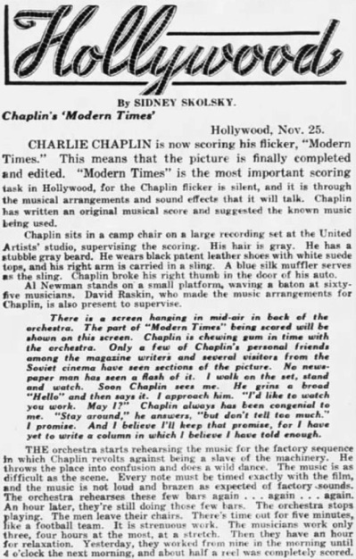 CHARLIE CHAPLIN is now scoring his flicker, Modern