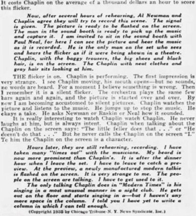 accustomed to silent pictures. Chaplin watches the picture
