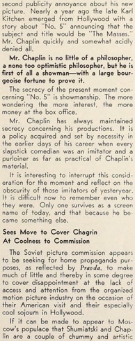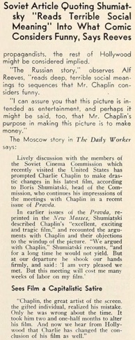 „Chaplin Annoyed by Reds‘ Attempt to ,Use‘ His Film“ (...)