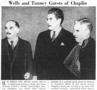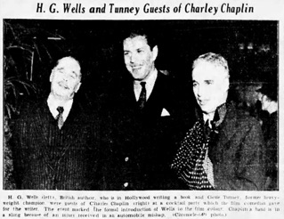& H. G. Wells and Tunney Guests of Charley Chaplin