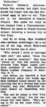 Miss Goddard So Terms Chaplin Betrothal Tale;