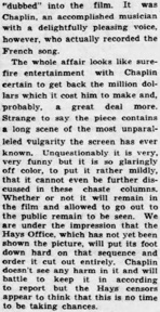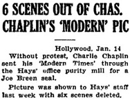 submitted to the Hays office for censorship. Chaplin tried