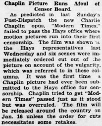 sent his Modern Times through the Hays‘ office purity mill for
