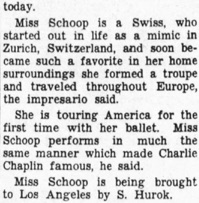 Trudi Schoop, comic ballet artist, is scheduled