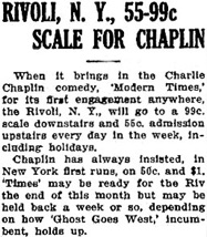 which is shown with „Modern Times“ at the Rivoli Theatre,