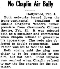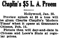 Editorial content. „Chaplin‘s $5 L. A. Preem