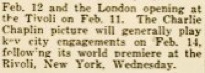 at the Tivoli on Feb. 11. The Charlie Chaplin picture
