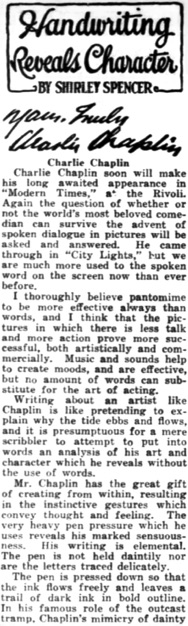 „Years ago, I saw a sample of Mr. Chaplin‘s handwriting
