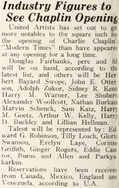 seats for the opening of Charlie Chaplin‘s „Modern Times“