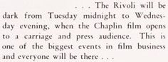 & The Rivoli will be dark from Tuesday midnight to Wednesday evening, when the Chaplin film opens to a carriage