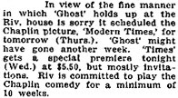 Third week $22,000. „Modern Times“ (Chaplin UA)