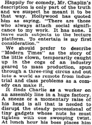 „Modern Times has still the same old Charlie, the lovable
