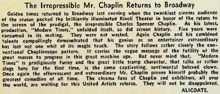 Editorial content. „The Irrepressible Mr. Chaplin Returns to Broadway
