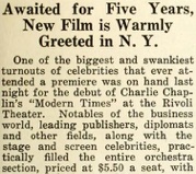 Editorial content. „Chaplin‘s ,Modern Times‘ Premiere
